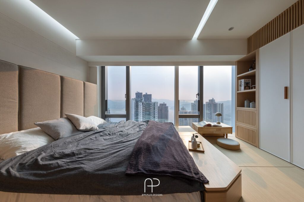來到重點主人房,環境延續日本風情,並大量透過自然木系元素堆疊出寧靜放鬆氣息。